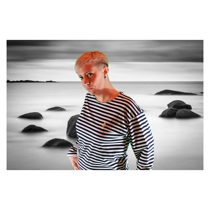 Marinière manches longues, hermine (symbole de la bretagne) dorée, brodée au cœur.