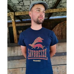 Tee-shirt bleu Marine Savbreizh et hermine bordeaux contour jaune.